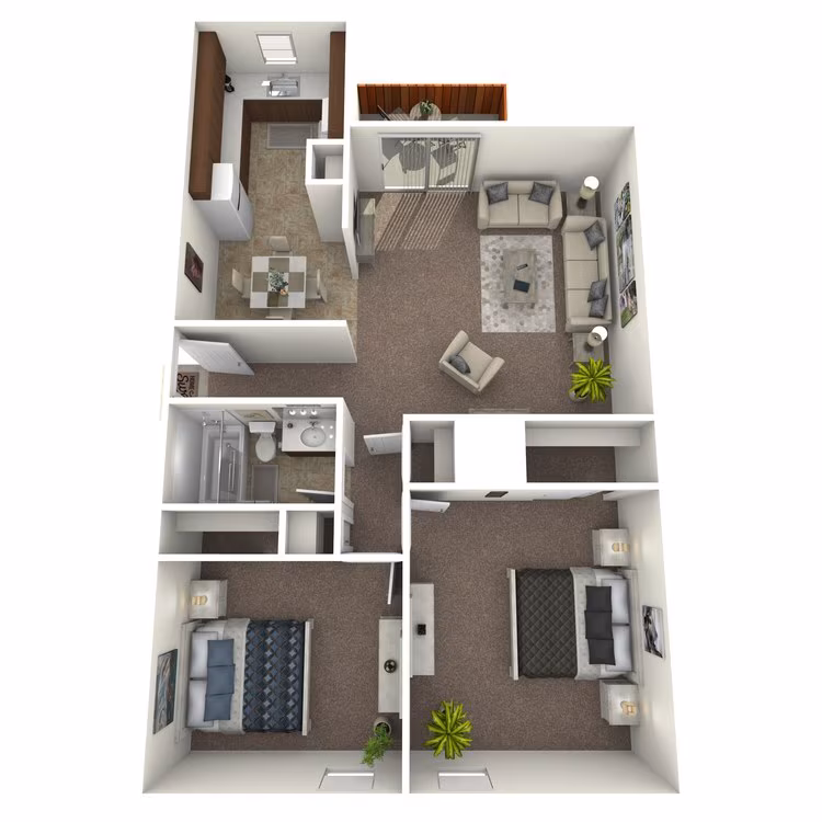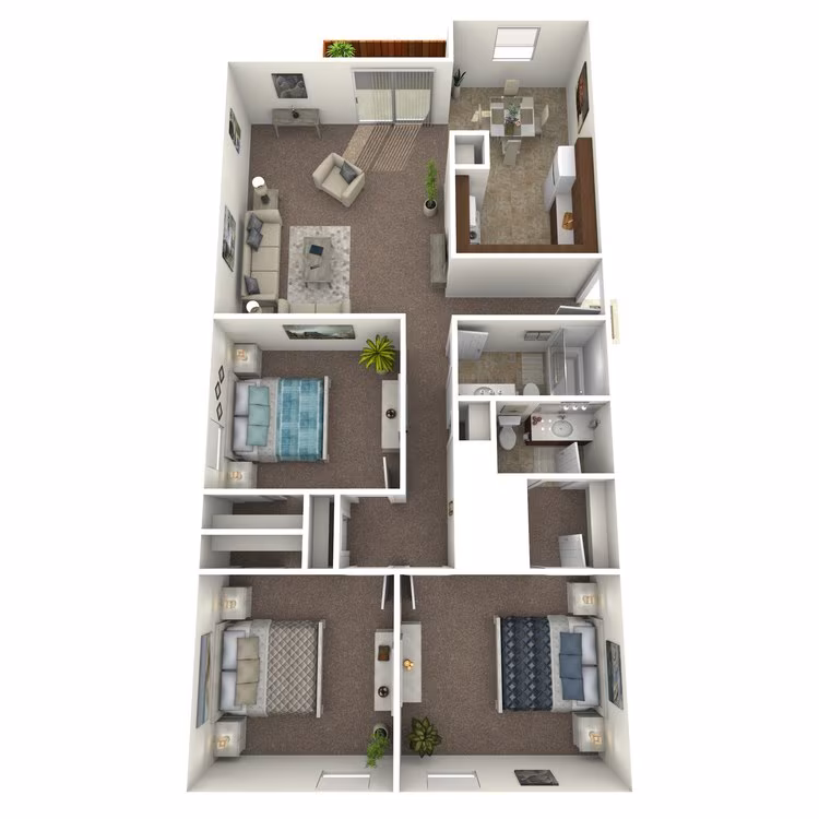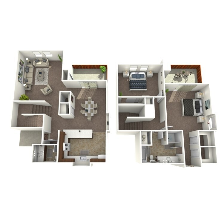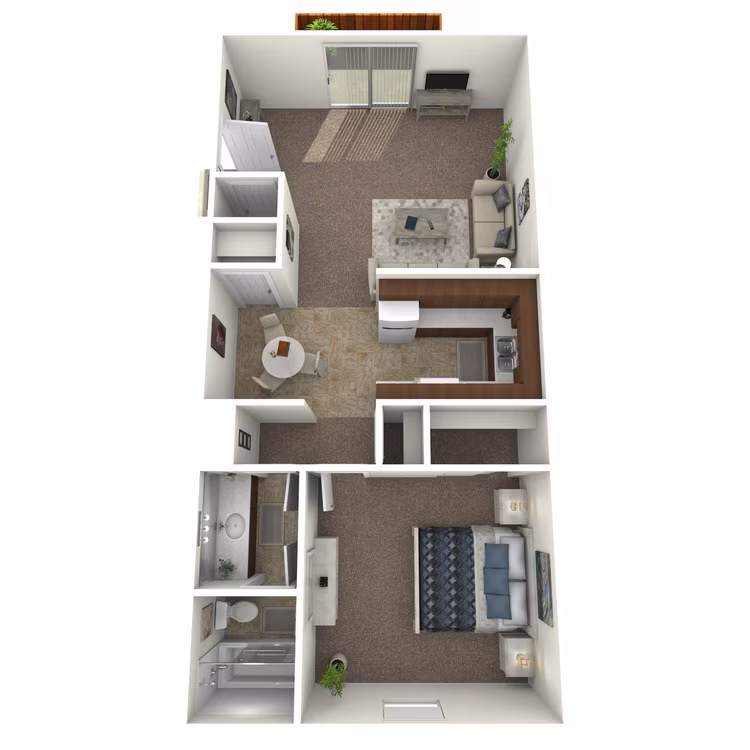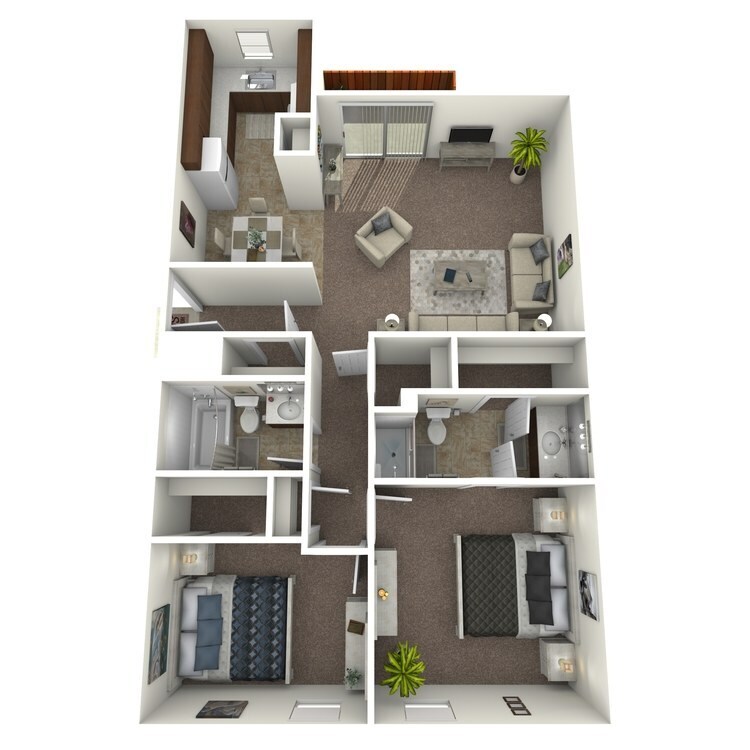 Our creatively designed one, two and three bedroom floor plans features soaking tubs, private patios, kitchen pantries, oversized closets, washer and dryer connections, some paid utilities and more!